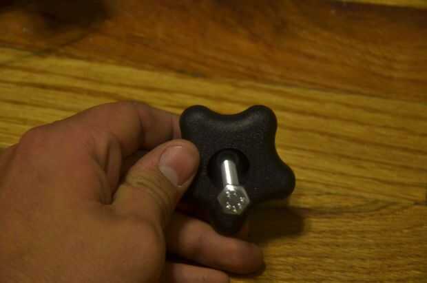 Asamblea. Pasar el perno por la parte posterior de la perilla. La pieza frontal se ajusta a través de la salida de lado del conducto y el perno a través de la