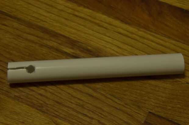 Perfore un agujero a través de la salida de lado a su conducto de modo que esté centrado un poco, después de pegar algunos espuma abajo en él (si decides hacerlo)
