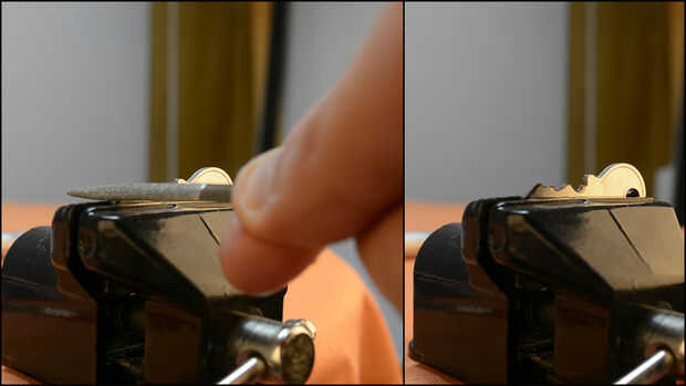 Clave no funcionó con la primera vez. Tuve que hacer pequeños ajustes. Hice los ajuste sin el vicio, manteniendo pulsada la tecla y pulido con un archivo.