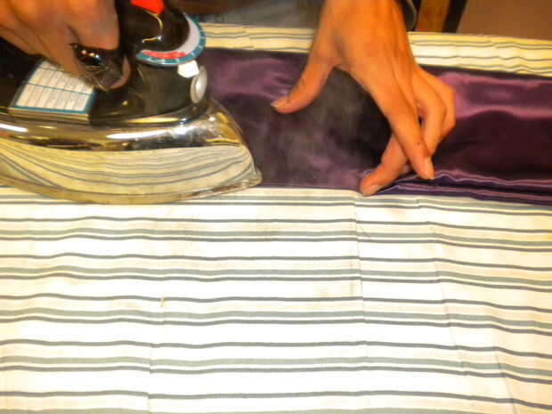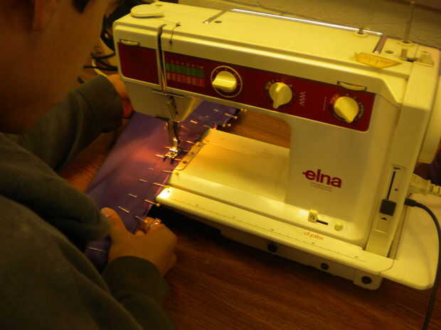 Coser una costura de 1/4" a lo largo de sus pernos.   Asegúrese de dejar abierto el final corto y recto.