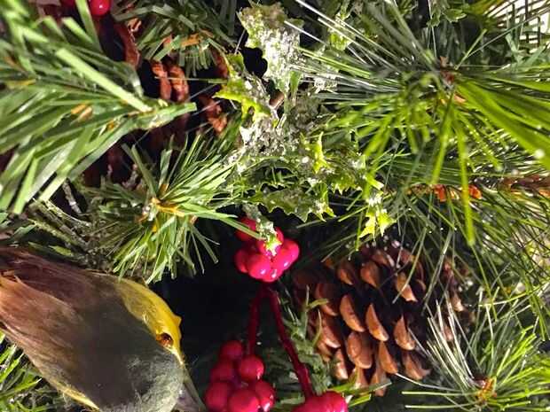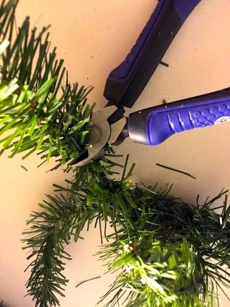 A veces hay lugares que no parecen tan completa como otras áreas, eso es aceptable. Con la izquierda sobre garland que corte algunas ramas, usando el pegamento... pegamento cortados extremos y relleno en puntos desnudos, sosteniendo en su lugar hasta que el pegamento ha fijado.