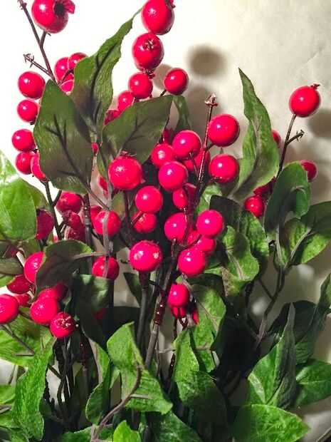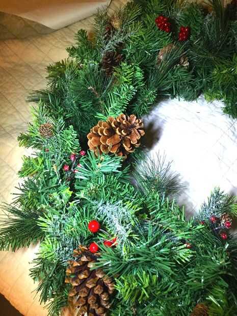 Una vez que sientes que has rellenado en su corona, añadir algunas piñas y bayas de acebo para rellenar áreas, según sea necesario... utilizando una pistola de pegamento o alambre floral para sujetar las piezas en su lugar.