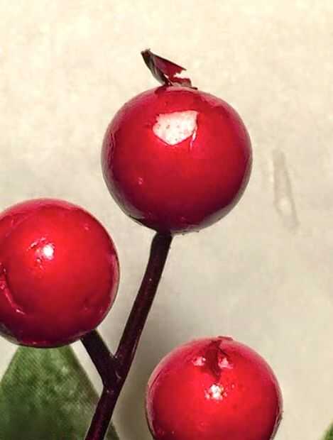 Nota: Las bayas; a veces, cuando usted compra un ramito de bayas de acebo, usted nota que algunos de los frutos pueden tener blanco "nicks" en ellos, en lugar de corte la baya, utilizar un rotulador de color en el nick.