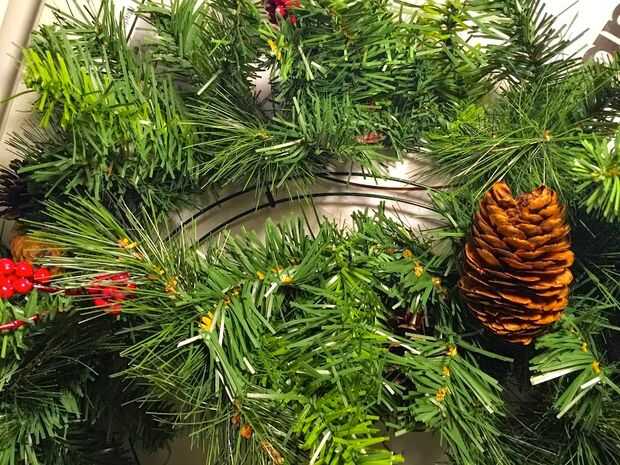 Guirnalda de lugar (parte inferior hacia abajo) en el marco de alambre (alambre más cercano al centro de la estructura de alambre primero) y enrolle el cable alrededor de la guirnalda y el marco varias veces, tirando de ella apretado un poco para que la guirnalda está firmemente sujeta al marco.