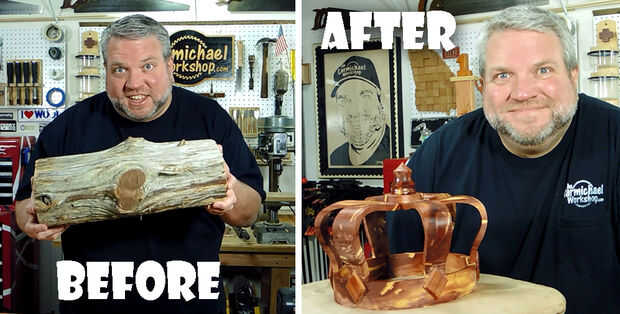 Transformé un tronco de cedro en una corona como se puede ver en el antes/después de la foto! Mira mi video para ver cómo lo hice, luego siga estas instrucciones para hacer su propio.