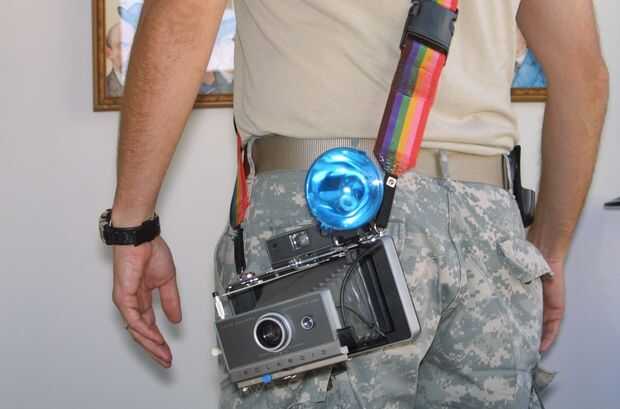 Hacer una correa de la cámara temática de Polaroid con las correas de equipaje