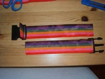2. corte dos longitudes de 6 pulgadas de material de la correa.