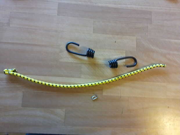 Mia piensa que es un perro de trineo, por lo que la correa debe tener cierta elasticidad. Cuerdas elásticas son fuertes y fácilmente disponibles y pueden reemplazar fácilmente. Puede agregar más de uno para modificar la fuerza - en paralelo para aumentar la resistencia en serie para aumentar la elasticidad.