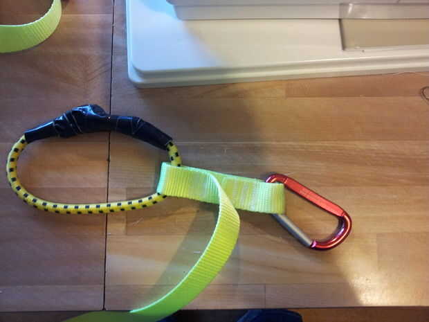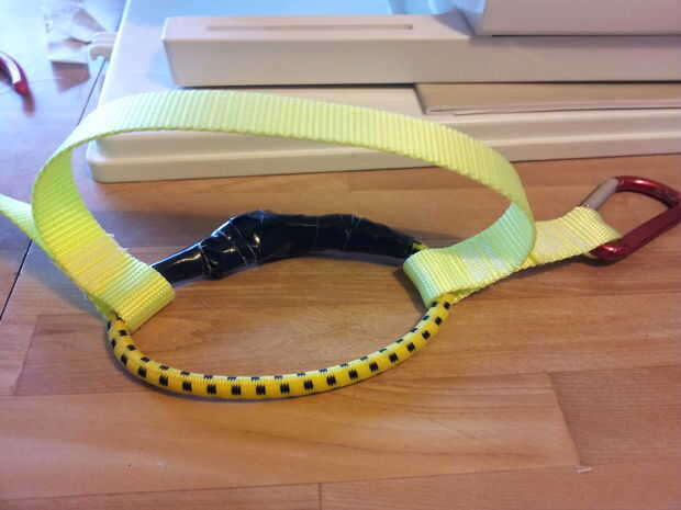 2. hacerlo de nuevo, para colocar el amortiguador auxiliar en dos lugares y crear el mango. Asegúrese de que hay suficiente cinta en la empuñadura para permitir que el bungee estirar completamente.