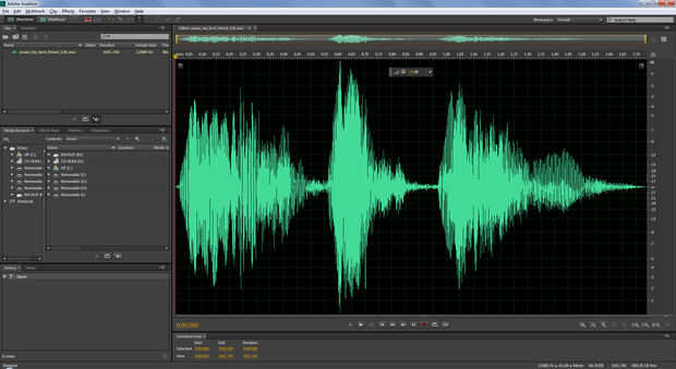 La imagen de arriba muestra lo que parece un archivo de audio grabado en Adobe Audition.