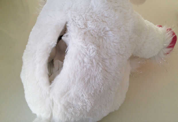 El Unicornio de peluche que estoy usando ya tiene una abertura de velcro para una caja de sonido, que es lo que me dio la idea para este Instructable. Si usas un juguete de la felpa que no tiene una apertura, entonces se necesita cortar una abertura en la piel y quitar (tal vez) algunos relleno para hacer espacio para la caja de sonidos. Usted debe ser capaz de añadir Velcro a la piel para cerrarla, o tal vez algo tan sencillo como usar pernos de seguridad trabajarán (aunque usted no querría usar pernos con un niño pequeño).