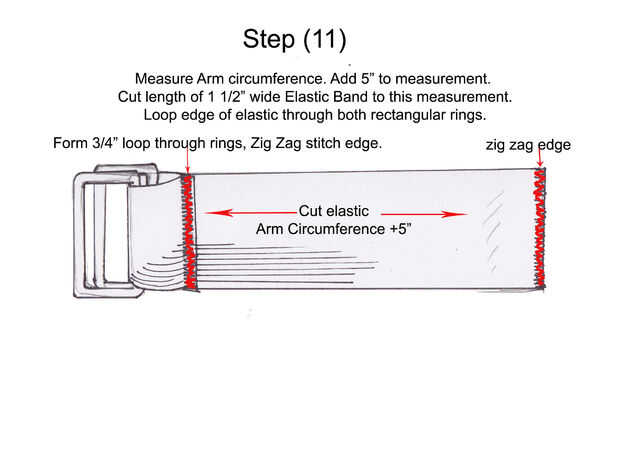 Inserte la 1 1/2" ancho banda elástica a través de ambos 1 1/2" anillos de metal, para crear una superposición de 3/4". Coser el borde de banda elástica con una puntada de zig zag para cerrar los anillos de metal. Zig Zag la costura de 2 a 3 veces por seguridad.