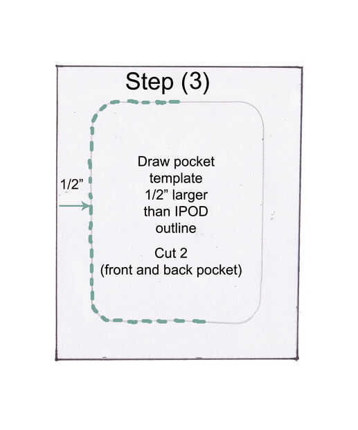 Medida y marca nuevas líneas de 1/2" más grandes en los lados de su contorno IPOD o teléfono celular. Esta es ahora la plantilla para su bolsillo delantero y trasero.