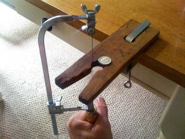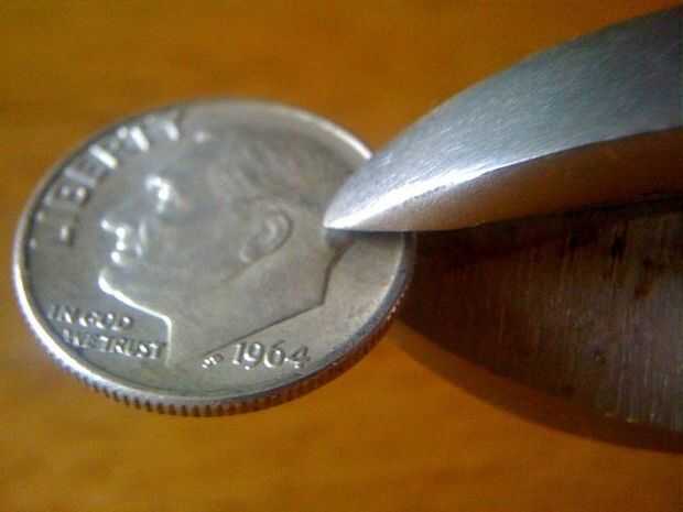 Si no tienes Sierra de joyero, una sierra para metales puede hacer el trabajo si usted Sujete la moneda en un tornillo de banco.