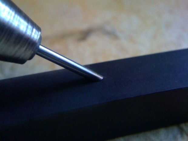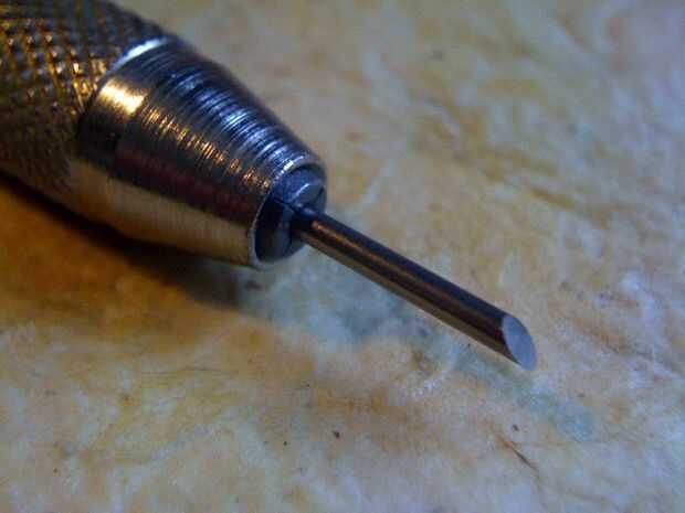 Una broca de 1/16 ha sido tierra en la parte posterior a un ángulo de 45° con un poco de Dremel.