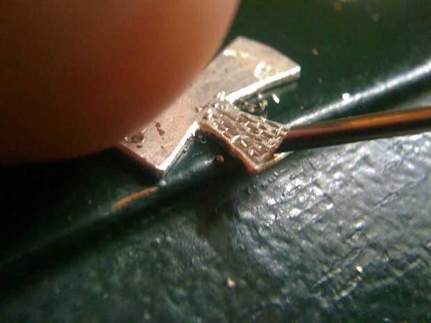 Tiraron la broca en un tornillo de perno e hizo un final afilado en una piedra de aceite fino para quitar las rebabas del borde. Eso es todo allí está a él. Esto hace que un filo que puede utilizarse para socavar una textura stipple. Toma un poco de práctica, pero sólo toma un par de minutos para crear un patrón al azar. Si realmente quieres ir cruz-eyed, puede hacer un patrón que simula un armadura de cesta o un patrón lineal.
