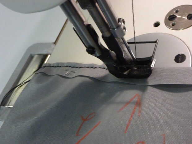 Coser en primer lugar, cerca de la tapa.  No coser sobre las grapas.  Junto a está bien, o quitar las grapas cuando están justo en frente de la pata prensora.
