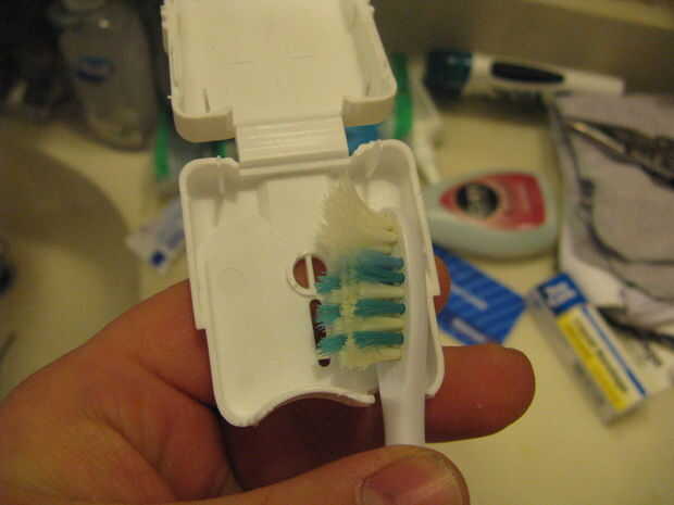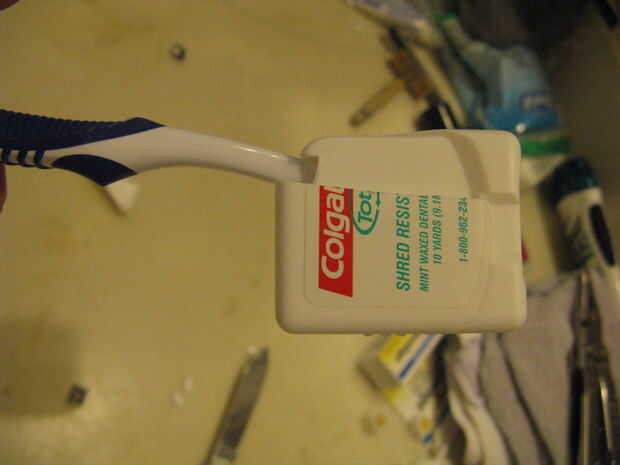 Cada vez que voy para mi limpieza, obtener una bolsa goody de adornos dentales, que entre los cuales es un dispensador de hilo dental poco ingenioso. Recientemente encontré que necesitan una cubierta de cepillo de dientes, pero no podía encontrar uno que colocar mi cepillo cresta llegar (con el raspador de lengua con crestas en la parte posterior de la cabeza-funciona realmente bien, por cierto). Consideraba los casos tubulares, pero está todo tan baratos estos días y no permanecer juntos. Por lo tanto, era una bolsa de plástico o de alguna manera la moda uno mismo. Aquí está lo que se me ocurrió: