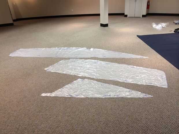 Solía el espacio de trabajo en TechShop Detroit todo Desplieque para rastrear los patrones. La pieza más larga de esta cubierta es 15 pies de largos y bastante difíciles de solucionar en un pequeño taller casero.
