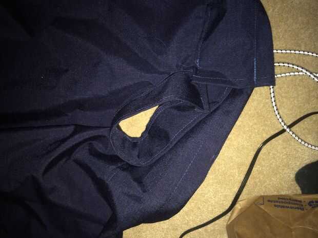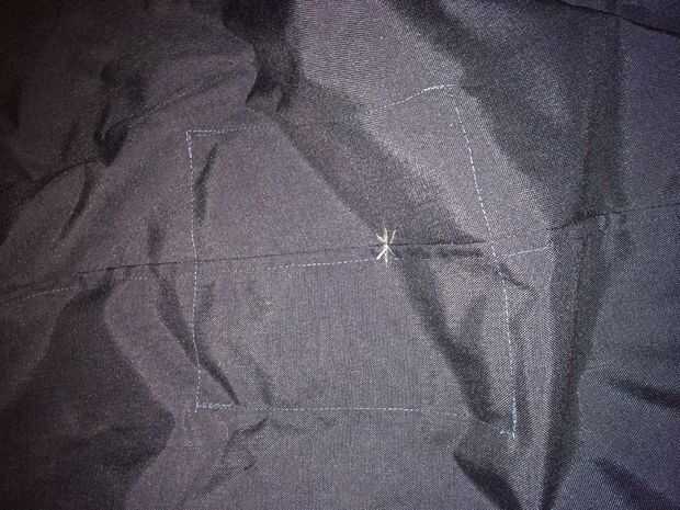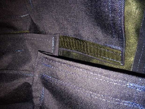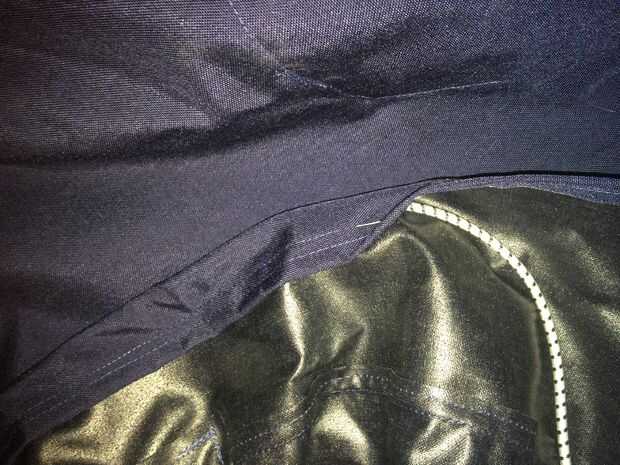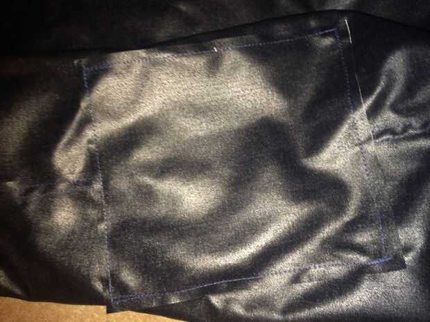 Cosí los bordes de la solapa de 2 cremallera en. Otra vez también son rectángulos que se dobla por la mitad por lo que son de doble capa y cosidos a las piezas principales.