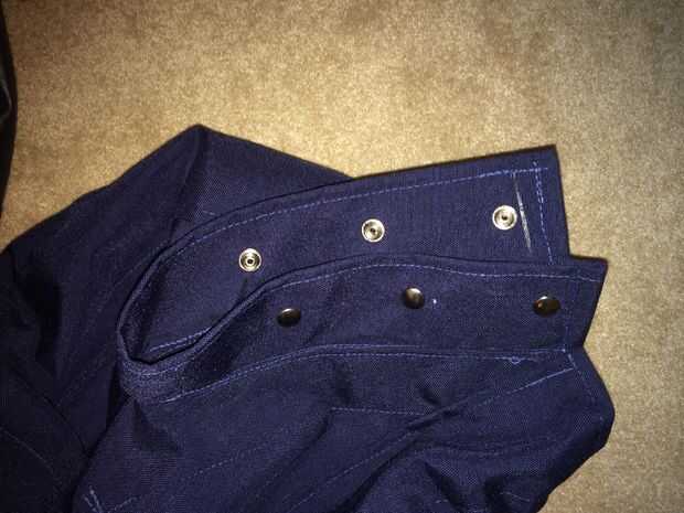 Añadir broches de presión en cada cubierta, en el mástil y por encima y por debajo de la cremallera. Utiliza broches de presión disponibles de Sailrite junto con la herramienta para pegarlas. La herramienta es un dado pequeño de metal y llave que utiliza para romper en como remaches. Existe una pinza barata como herramienta de West Marine para unir estos. No funciona bien, no malgastes tu dinero en él. Utilice la herramienta martillo o gastar mucho para obtener la herramienta sailrite que luce como un gran conjunto de vice apretones.