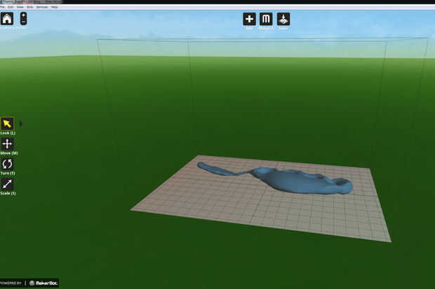 Después de todos los agujeros han sido parches en MeshMixer, por lo que es un sólido, ahora usted puede enviar a la impresora 3D. Abra el archivo en MakerWare y colocarlo en la plataforma. Envíe a la MakerBot Replicator.