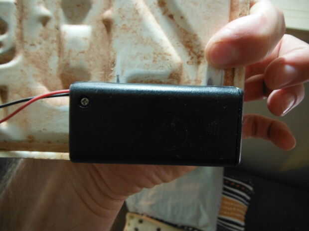 Una vez que hayas hecho esto, sólo utilizar un poco de pegamento epóxico y pegar por detrás las luces de y pegar el portapilas en la parte posterior de la placa con el interruptor que viene a través de la placa original de los agujeros de montaje.