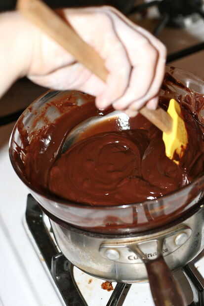 Ahora, revuelva hasta que el chocolate es suave. Si los trozos son obstinadamente no sale, tampoco puede poner su tazón de fuente en el microondas durante 20 segundos a la vez (que no me gusta hacer creo es desmenuzable) o rápida puede enjuagar su cacerola crema, hervir agua en ella y pop el recipiente en la parte superior para la caldera de doble acción. ¿Por esta razón utilizamos un vaso o recipiente de metal - no somos inteligente?
