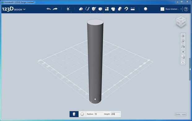 En el menú de primitivas, seleccione cilindro. Escriba el radio deseado y altura en los espacios indicados. La altura y el radio afectan el tono del proyecto terminado, y la altura afectará la gama disponible. Mina tiene un radio de 15 mm y una altura de 200 mm.