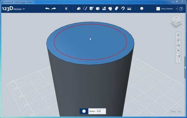 Primitivas, seleccione círculo. Coloque en el centro de la parte superior del cilindro que creó en el paso pasado. El radio debe ser ligeramente más pequeño que el del cilindro. Mina tiene un radio de 12,5 mm. A continuación, seleccione extraer desde el menú de construcción. Haga clic en el círculo e introduzca la altura del cilindro. Asegúrese de que esa protuberancia que apunta hacia abajo en el cilindro, y la función de corte se selecciona antes de que termine la extrusión. Esto si dejo un tubo hueco.