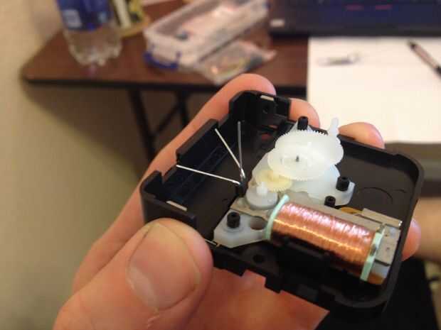 Las imágenes aquí muestran el interior del reloj de la real y el imán de motor en el lado derecho. El tipo de reloj se llama "Cuarzo Takane" y son bastante comunes en los relojes analógicos baratos.