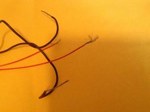 Ahora tenemos dos cables conectados y dos cables que quedan desconectados. Tomar los dos cables conectados y empujarlos en la tubería en cuanto pueda; no necesitamos ver más los cables. Ahora sólo tenemos dos cables no conectados. Estos se conectarán a la fuente de alimentación.
