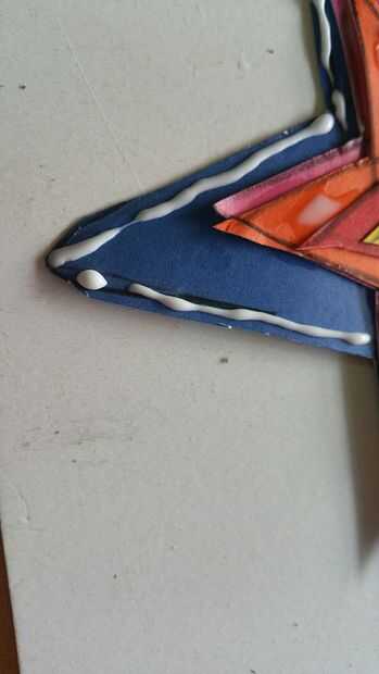 poner pegamento en la línea de frontera de la estrella de s y fije confetties