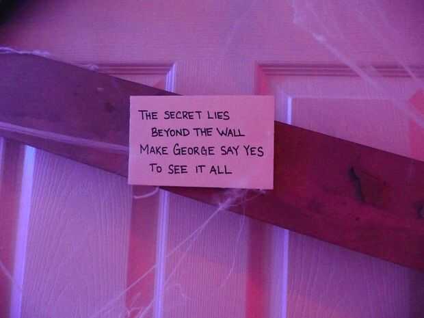 Algunos detalles finales realmente ayudarán a tirar todo junto. También, la sorpresa de la abertura de la pared es mayor si la iluminación/decoración es diferente en cada lado de la habitación. Dentro, hemos añadido algunas correas y LED velas dentro de una atmósfera de decadencia, escalofriante. Fuera teníamos decoraciones e iluminación de colores diferentes.
