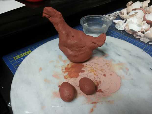 Directamente pegan las cáscaras de huevo pero que es muy difícil así que primero hice una escultura de base con arcilla.