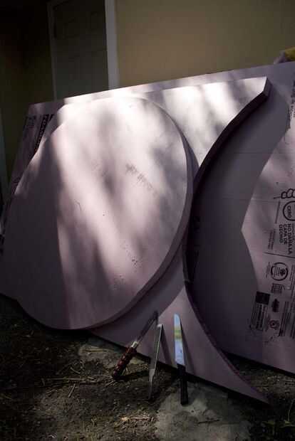 Espuma de aislamiento - en le local hogar tienda. Usé 4'x 8'x 2" hojas. alrededor de 4 de ellos para este ámbito. (lo siento no sé exactamente cuántos, yo también estaba trabajando en otro proyecto al mismo tiempo