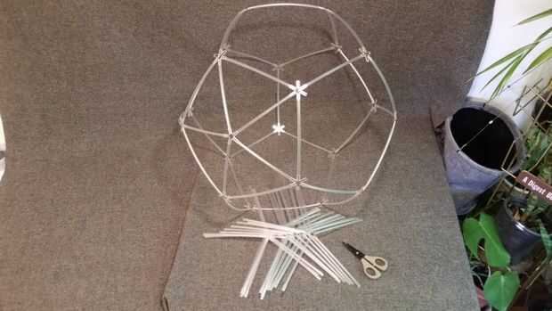 Con la paja de longitud completa (30) y los cubos de seis puntas (20), arme un dodecaedro de caras 12 básicos.
