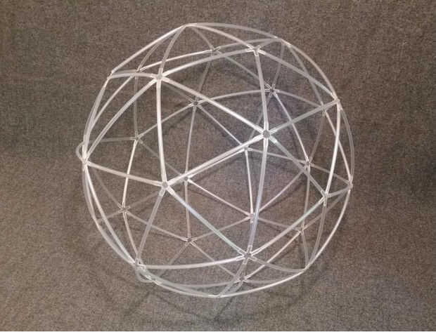 Ver este dodecaedro básica instructable para orientación adicional. Utiliza puntas de 3 ejes, que nos replacex con los ejes de seis puntas para insertar adicional triangulación de una superficie más esférica. El marco básico del dodecaedro es el mismo en ambos casos.
