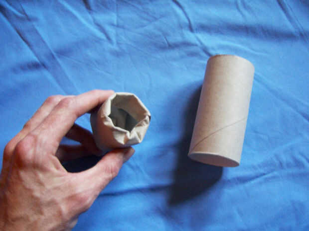Hice un pomo de un tubo de papel higiénico doblando desde el exterior en. Resultó que vean muy bien.