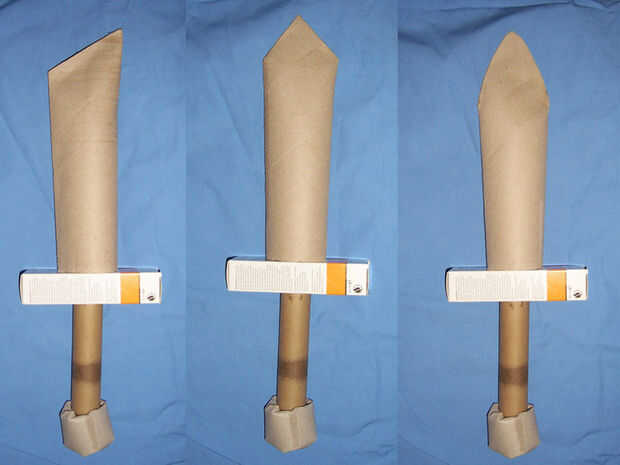 Toma la caja llena para la guardia y hacer un agujero ajustado para el tubo de espiga a un lado. El agujero en el otro lado puede ser más amplia. Se ampliarse para ajustarse a la hoja más adelante.