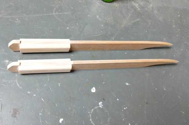 cómo hacer una espada de doble hoja personalPaso 1: Montaje de elementos Se necesita:1 1-1/8 pulgadas x 48 pulgadas de clavija de madera: $32 machetes de 22 pulgadas: $46Cinta adhesiva: $3Paso 2: Assembely Dar una descripción general de la StepUsing