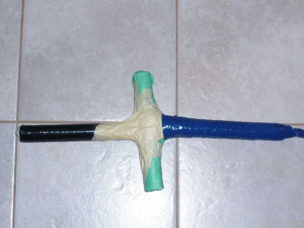Decorar!! Ahora que su final y todo está bien ajustado se puede decorar espada en cualquier forma que quieras. Pintura en aerosol, pintura, cinta, lápiz color, fabricante, etc... son todas cosas buenas para adornar con. Como puedes ver en mi foto que usé cinta eléctrica negro/azul para decorar mina. Yo también envuelve la cinta alrededor de las articulaciones de la espada para darle mayor durabilidad. RECUERDE... Utilizar un montón de cinta alrededor de las articulaciones para mantenerlas firmes. En mi foto puedes ver también que grabó completamente mi espada entera. Esto agrega también a la durabilidad de la misma. Diviértete jugando con tu espada!