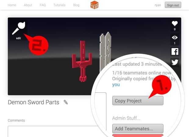 2. una vez que tenga su propia copia del proyecto, haga clic en Editar para abrir la interfaz de cubo equipo.