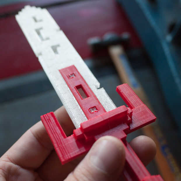 Una vez que las piezas están impresas, usted está listo para ponerlos juntos. Puede que necesite un martillo ligero para esto (plástico o goma son los mejores) ya que el ajuste puede ser un poco apretado.