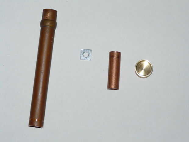 Básicamente es un trozo de tubo con una hoja más pequeña que se inserta en él, no en un extremo y luego dos tapas que cubren los extremos. Una de las tapas tiene un orificio para atornillar un tornillo en la tuerca