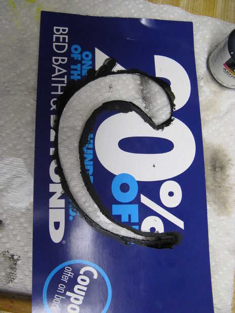 Tomó una captura de pantalla del video, luego imprimir la parte de ella que contenía un brazo completo interior. Cortar el brazo y trazado en un trozo de papel rígido (utilicé algunos cupones de spam). Entonces cuidadosamente corté la forma con mi cuchillo de confianza. La plantilla resultante estaba atascada en el círculo (me aseguré de centro en que agujero hecho por la tachuela cuando yo primero lo dibujó) y pintados de negro.
