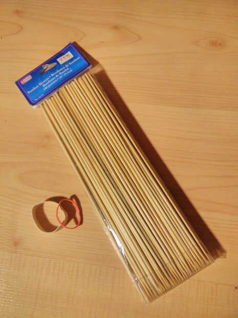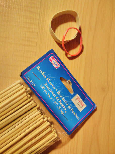 Un corssbow poco agradable con 4 palillos, una pinza para la ropa, cinta, una goma aislante y (el perno) vuelos de cualquier tipo y un pincho de bambú.Paso 1: Hacer las partes básicas Primero, alinee los palillos en parejas y hacer una cruz con ellos