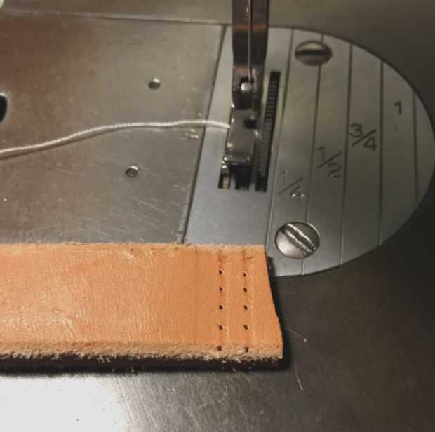 O usando el Juki sin hilo y lentamente recorrió el cuero con la mano para hacer las perforaciones.