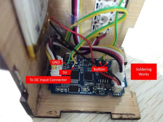 Tenemos que hacer alguna soldadura, a la línea hacia fuera del botón y 5V entrada.