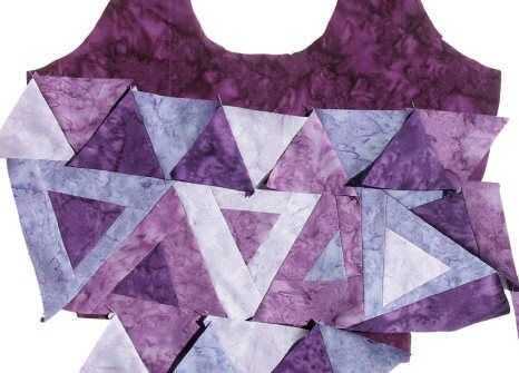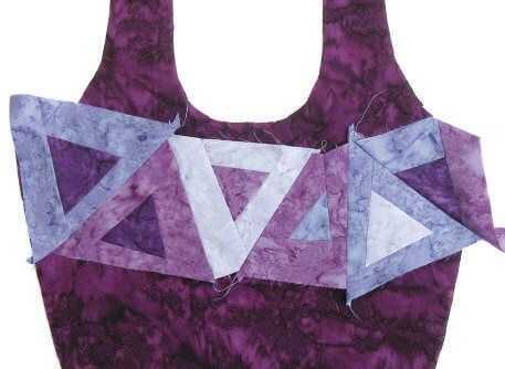 3. Coloque los triángulos y la tira acabada en su tela de la guarnición y esto ayude a juzgar dónde agregar el siguiente triángulo. Continuar hasta que sea tiempo suficiente para ir a la derecha a través de la bolsa.